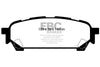 Designed for premium street driving offering better brake effect up to 600-degrees C (1100-degrees F). EBC Greenstuff has a high initial brake effect and gives drivers confidence from first application of the brake pedal. There is no such thing as a NO DUST pad. The very nature of how a brake works requires that some dust be generated to avoid rotor vibration (shimmying). The EBC pad creates less dust and dust is more easily washed off than most. All pads create more dust as they are bedding in especially if rotors are worn. Nominal friction coefficient 0.55. For heavier faster cars and vehicles above 200bhp we strongly recommend Redstuff which DOES offer much less dust.