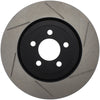 StopTech Slotted Sport Rotors are 1-piece direct replacement brake discs for factory brake systems and stock calipers that look great behind your wheels – and offer significantly improved braking performance. The unique slotting aids with heat and brake dust dispersal; prevents glazing of the pads; adds bite and improves wet and dry braking performance. Built to last; the black e-coating provides protection from corrosion and the high carbon metallurgy (in most applications) offers quieter operation; better crack resistance and increased performance.