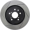 StopTech Slotted Sport Rotors are 1-piece direct replacement brake discs for factory brake systems and stock calipers that look great behind your wheels – and offer significantly improved braking performance. The unique slotting aids with heat and brake dust dispersal; prevents glazing of the pads; adds bite and improves wet and dry braking performance. Built to last; the black e-coating provides protection from corrosion and the high carbon metallurgy (in most applications) offers quieter operation; better crack resistance and increased performance.