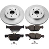 PowerStop is on a mission to deliver an easy way for any driver to upgrade their brakes - no matter where or how they use their vehicle. Our Z17 Evolution Geomet Coated Rotor Brake Kit includes brake pads, rotors, and stainless-steel hardware; everything you need for the affordable, easy replacement brake kit for your daily-driven vehicle. The Z17 Evolution pads feature a low-dust formula, validated through on-vehicle 3rd party tests in the USA, to keep your wheels looking like new. These pads also have multi-layer rubberized shims that insulate noise for virtually silent braking. The rotors are treated with a thin layer of Genuine GEOMET 360 coating to protect against rust and corrosion without diminishing braking performance, and are manufactured to original equipment specifications. If you're looking to refresh the look and braking performance of your old, worn-out brakes, look no further. Say hello to a smooth, quiet commute with the Z17 Evolution Geomet Coated Rotor Brake Kit.