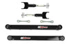 This kit includes (1) set of our Boxed lower control arms and (1) set of our on-car adjustable upper control arms, "Ultimate Arms". Both items are direct replacements of the OEM set up adding strength, ride improvement and most importantly, rear end adjustment. The lower control arms feature grease-able Energy Suspension polyurethane bushings, reinforced sway bar holes to accept all sway bars and brilliant powder coat. Our upper "Ultimate Arms" feature on-car adjustability using right and left hand threads, 4140 high strength Chrome Moly adjuster and a QA1 Teflon lined spherical rod end. The upper control arms give you best and easiest way to adjust pinion angle for suspension tuning. Features: - Each item CNC machined to exact tolerances and accuracy - Lower control arms feature grease-able Energy Suspension Polyurethane bushings - Upper control arms feature on-car adjustability - QA1 Teflon lined rod end helps eliminate rear end bind - 4140 Chrome Moly threaded tube adaptors - 4140 Chrome Moly heat treated adjuster