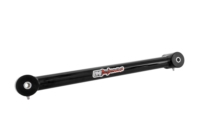 UMI’s heavy duty control arms are direct replacements of the weak, factory stamped rear lower control arms. UMI’s control arms are constructed of 1-1/2” mild steel tubing with CNC machined ends and assembled with polyurethane bushings. These direct bolt-on replacements are designed to minimize wheel hop and improve cornering, while lowering track ETs and helping track consistency. Control arms come complete with polyurethane bushings, grease fittings, zinc-plated steel sleeves and finished in a gloss powder coat.
