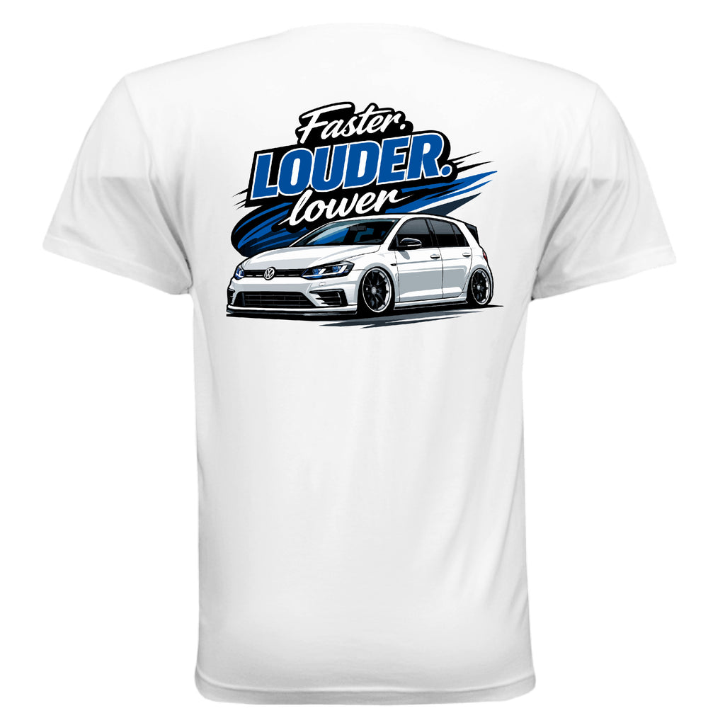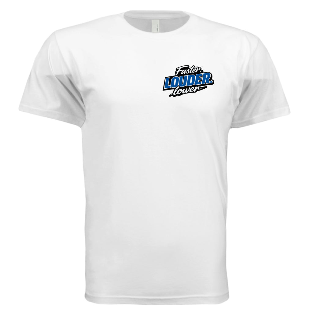 Built for the streets, the shop, and everywhere in between — the Faster. LOUDER. lower.™ cotton crew is the everyday essential for those who live the modified life.