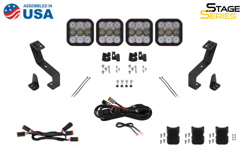 Features Bolt-on fitment compatible with Ram 1500 2019-2024. Allows you to mount a four-pod CrossLink lightbar across the grille. Ultra-high intensity, with custom-engineered TIR optics. Selectable backlight color, with eight color options. Torture-tested, heavy-duty construction. Utilizes existing mounting points for easy installation. Assembled in USA Overview Perfect Fitment. The Grille CrossLink Lightbar Kit compatible with Ram 1500 2019-2024 from Diode Dynamics allows you to mount four linked SS5 LED pods on the factory grille. These application-specific brackets were CAD-designed to bolt into place using factory mounting points on the bumper. No cutting or drilling required! Designed for Performance. Featuring the highest output intensity of any 5-inch LED pod on the market, these lamps have been designed for maximum functionality, with patented technology and custom-engineered TIR optics, all in a durable package. Selectable Backlight. The Stage Series 5inch LED Pods included in the White kit feature a selectable backlight with eight different color options, perfect for an extra styling accent that you won't find on other LED pods. Selecting your backlight color is easy - simply alternate the power on and off. There's no complicated programming with a controller! The SS5's backlight fully illuminates the TIR optic. NOTE: The Yellow kit is only available with an Amber backlight color. CrossLink. Our patent-pending CrossLink technology allows you to link up to eight SS5 pods together to create your own lightbar. The single-piece CNC aluminum link provides extreme rigidity, but is fully adjustable, for both straight and curved configurations.