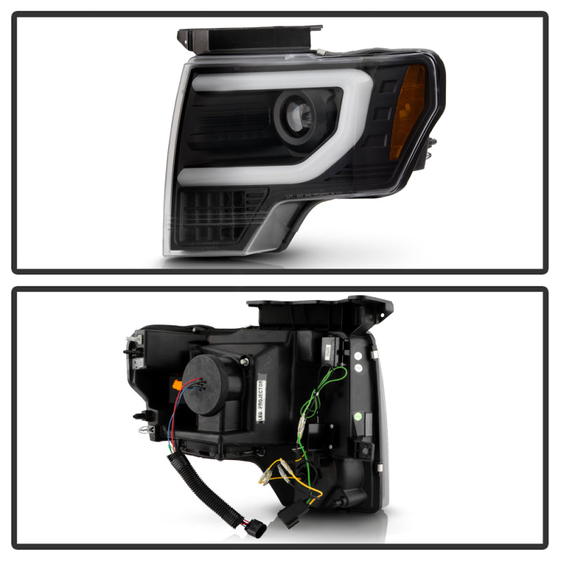 Spyder Ford F150 09-14 Halogen Light Bar Projector Headlights Black PRO-YD-FF15009PL-SEQ-BK