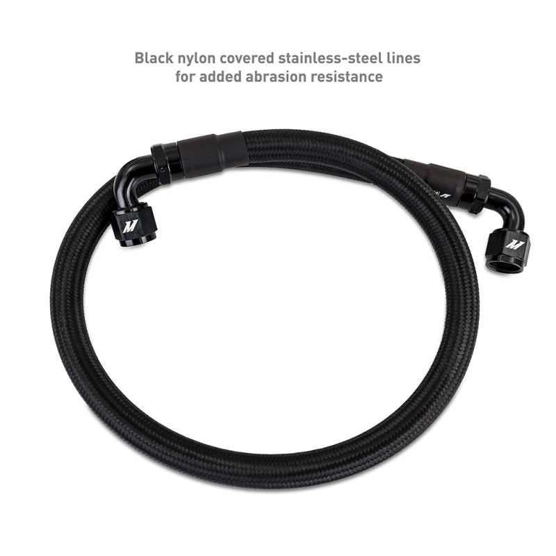 and when you spend 20 minutes banging off the limiter and sliding sideways, airflow through the radiator is at a minimum, while heat buildup is at a maximum. The solution is a supplemental cooler whose only job is to cool the engine oil. Luckily, we’ve developed that solution.----This Mishimoto performance oil cooler kit for your 2022+ Subaru BRZ or Toyota GR86 adds a robust 19-row external oil cooler to the otherwise anemic stock system. This cooler takes the load off your engine coolant and adds 0.75 quarts of oil to the system for even greater cooling and lubricating performance. In thermostatic spec, this kit eliminates the liquid-to-liquid cooler, reducing failure points and allowing each system to operate completely independently for maximum performance. For dedicated race cars that need full cooling, right away, the non-thermostatic option retains the stock cooler to help get oil temps and viscosity in operating range fast.----Our direct-fit mounting bracket places the oil cooler front and center in the grille for maximum airflow, while the -10AN braided-steel lines ensure constant flow through the system. The included heat shielding sleeve adds another layer of protection against abrasion while keeping engine bay heat out of the oil.----This performance oil cooler kit includes everything you need for installation, so you can get your 2022+ BRZ or GR86 back on the street or track in no time. Like all Mishimoto products, this kit is backed by our Mishimoto Lifetime Warranty.