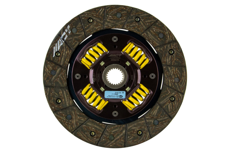 3000216 is a performance street disc and the most popular disc purchased. It features premium organic materials with high copper content for better heat transfer. Performance street discs allow for quicker shifting and smooth engagement. These discs feature a reduced marcel for faster shift action to complement ACT pressure plates. ACT spring-centered assemblies use bushings and cone springs similar to factory clutch discs. This creates frictional dampening, which improves clutch life and reduces noise. Quiet operation with increased strength and reliability.