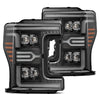 AlphaRex 17-19 Ford F-250/350/450 SD NOVA-Series LED Proj Headlights Bk w/Actv Light SeqSig & SBDRL