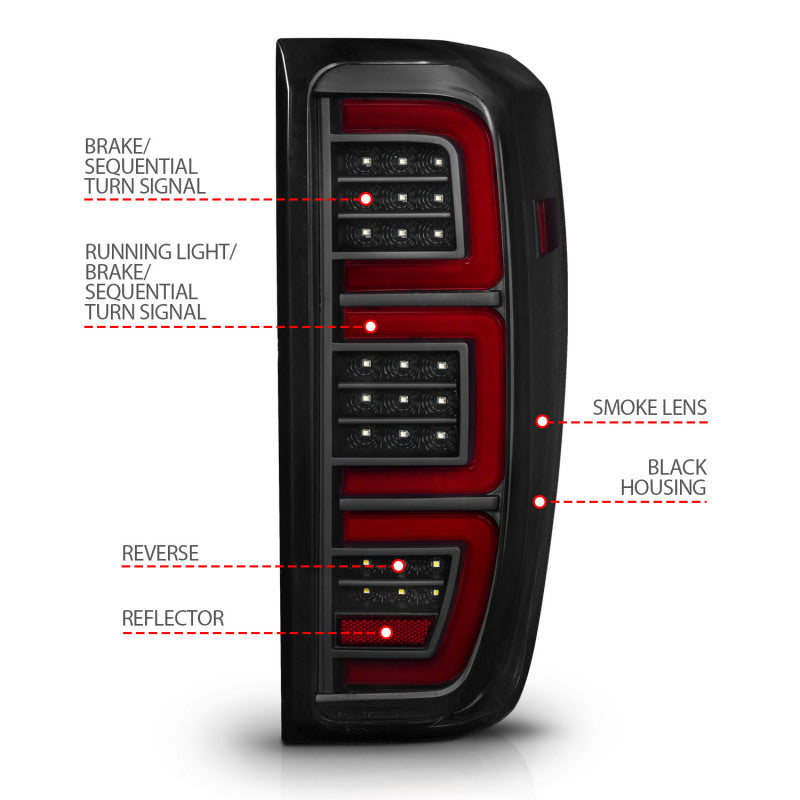 ANZO 19-23 GMC Sierra 1500/2500HD/3500HD Smoke Black Replacement Full LED Bar Tail Light