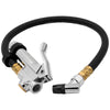 This tire inflator assembly features a quick fill lever valve and button operated bleed for fast and precise adjustments. Pressure inlet and gauge attachment point are both 1/4" NPT female thread. Includes 18 inch flexible air hose equipped with 45 degree bullet air chuck on a 360 swivel fitting to accommodate a variety of wheel types and valve stem locations.
