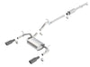 This system features a black chrome finish on T-304 stainless steel tips. Using Borla(r) Stainless Steel Polish p# 21461 is NOT recommended with these black chrome tips. We suggest cleaning the tips with hot water and a microfiber cloth. Borla(r) Cat-Back(tm) and Axle-Back exhaust systems feature patented straight-through and multi-core technology designed to unleash hidden horsepower. Increased exhaust velocity adds power, driving excitement, fuel economy, and the distinctive Borla(r) Sound of Power respected by motoring enthusiasts everywhere. Each system is built from premium T-304 stainless steel, superior to T-400 series knockoffs (such as 409), to give you the absolute best in performance and durability. Ultra-smooth mandrel bends ensure maximum flow & power, and precision computer-controlled CNC manufacturing ensures an accurate fit. Best of all, Borla(r) stands behind every system with a Million-Mile Warranty. Just what you'd expect from the world's most experienced (and most winning) exhaust brand.