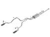 Muffler contains an internal H-Pipe for increased performance and improved sound. 140638 is a full True Dual, split rear exit, Cat-Back(tm) system with 4" black chrome on T-304 stainless steel tips. Using Borla(r) Stainless Steel Polish p# 21461 is NOT recommended with these black chrome tips. Bright chrome on T-304 stainless steel tips are also available. We suggest cleaning the tips with hot water and a microfiber cloth. Bright chrome on T304 stainless steel tips are also available. Borla(r) Cat-Back(tm) and Axle-Back exhaust systems feature patented straight-through and multi-core technology designed to unleash hidden horsepower. Increased exhaust velocity adds power, driving excitement, fuel economy, and the distinctive Borla(r) Sound of Power respected by motoring enthusiasts everywhere. Each system is built from premium T-304 stainless steel, superior to T-400 series knockoffs (such as 409), to give you the absolute best in performance and durability. Ultra-smooth mandrel bends ensure maximum flow & power, and precision computer numerical control (CNC) manufacturing ensures an accurate fit. Best of all, Borla(r) stands behind every system with a Million-Mile Warranty. Just what you'd expect from the world's most experienced (and most winning) exhaust brand.