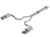 WITHOUT Active Valve Exhaust. NOT recommended for use on Convertibles. 3" diameter system. System contains a merge X-Pipe for increased performance and improved sound. System features Borla(r)'s Polyphonic Harmonizer Technology which utilizes patented units that contain pipes of different diameters and lengths to create multiple exhaust notes that harmonize to deliver a clean, rich, full-bodied sound to the Borla(r) mufflers. The mufflers then enhance this sound to the character and volume appropriate for our Touring, S-Type and ATAK(r) systems. System also features 4" carbon fiber tips with bright centers. Borla(r) Cat-Back(tm) and Axle-Back multi-core technology is designed to unleash hidden horsepower. Increased exhaust velocity adds power, driving excitement, fuel economy, and the distinctive Borla(r) Sound of Power respected by motoring enthusiasts everywhere. Each system is built from premium T-304 stainless steel, superior to T-400 series knockoffs (such as 409), to give you the absolute best in performance and durability. Ultra-smooth mandrel bends ensure maximum flow & power, and precision computer numerical control (CNC) manufacturing ensures an accurate fit. Best of all, Borla(r) stands behind every system with a Million-Mile Warranty. Just what you'd expect from the world's most experienced (and most winning) exhaust brand.