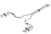 WITHOUT Active valve Exhaust. NOT recommended for use on Convertibles. 3" diameter system. System contains a merge X-Pipe for increased performance and improved sound. System features Borla(r)'s Polyphonic Harmonizer Technology which utilizes patented units that contain pipes of different diameters and lengths to create multiple exhaust notes that harmonize to deliver a clean, rich, full-bodied sound to the Borla(r) mufflers. The mufflers then enhance this sound to the character and volume appropriate for our Touring, S-Type and ATAK(r) systems. This system features bright chrome on T-304 stainless steel tips. Borla(r) Cat-Back(tm) and Axle-Back multi-core technology is designed to unleash hidden horsepower. Increased exhaust velocity adds power, driving excitement, fuel economy, and the distinctive Borla(r) Sound of Power respected by motoring enthusiasts everywhere. Each system is built from premium T-304 stainless steel, superior to T-400 series knockoffs (such as 409), to give you the absolute best in performance and durability. Ultra-smooth mandrel bends ensure maximum flow& power, and precision computer-controlled CNC manufacturing ensures an accurate fit. Best of all, Borla(r) stands behind every system with a Million-Mile Warranty. Just what you'd expect from the world's most experienced (and most winning) exhaust brand.