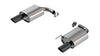 This 2.5" diameter Borla(r) Axle-Back system is designed for use on EcoBoost cars WITHOUT the Active Exhaust feature. It features the classic S-Type sound with no drone inside the vehicle and single 4" round black chrome on T-304 stainless steel tips on each muffler assembly. Using Borla(r) Stainless Steel Polish p# 21461 is NOT recommended with these black chrome tips. We suggest cleaning the tips with hot water and a microfiber cloth. Systems with bright chrome on T-304 stainless steel tips, and carbon fiber tips are also available. Borla(r) Cat-Back(tm) and Axle-Back exhaust systems feature patented straight-through and multi-core technology designed to unleash hidden horsepower. Increased exhaust velocity adds power, driving excitement, fuel economy, and the distinctive Borla(r) Sound of Power respected by motoring enthusiasts everywhere. Each system is built from premium T-304 stainless steel, superior to T-400 series knockoffs (such as 409), to give you the absolute best in performance and durability. Ultra-smooth mandrel bends ensure maximum flow & power, and precision computer numerical control (CNC) manufacturing ensures an accurate fit. Best of all, Borla(r) stands behind every system with a Million-Mile Warranty. Just what you'd expect from the world's most experienced (and most winning) exhaust brand.