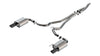 This 2.5" diameter Borla(r) Cat-Back(tm) system is designed for use on EcoBoost cars WITHOUT the Active Exhaust feature. It features the classic S-Type sound with no drone inside the vehicle and single 4" round black chrome on T-304 stainless steel tips on each muffler assembly. Systems with bright chrome on T-304 stainless steel tips, and carbon fiber tips are also available. Borla(r) Cat-Back(tm) and Axle-Back exhaust systems feature patented straight-through and multi-core technology designed to unleash hidden horsepower. Increased exhaust velocity adds power, driving excitement, fuel economy, and the distinctive Borla(r) Sound of Power respected by motoring enthusiasts everywhere. Each system is built from premium T-304 stainless steel, superior to T-400 series knockoffs (such as 409), to give you the absolute best in performance and durability. Ultra-smooth mandrel bends ensure maximum flow & power, and precision computer numerical control (CNC) manufacturing ensures an accurate fit. Best of all, Borla(r) stands behind every system with a Million-Mile Warranty. Just what you'd expect from the world's most experienced (and most winning) exhaust brand.