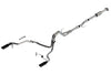 This 3" into dual 2.25" diameter Borla(r) Cat-Back(tm) system was specifically designed to enhance the power and sound of the Ford F-150 equipped with 2.7L and 3.5L Engines. The split rear exit configuration replaces the single factory tail pipe, and has single 4" round black chrome on T-304 stainless steel tips on each tail pipe. Using Borla(r) Stainless Steel Polish p# 21461 is NOT recommended with these black chrome tips. We suggest cleaning the tips with hot water and a microfiber cloth. A system with bright chrome on T-304 stainless steel tips is also available. The entire system is made of T-304 stainless steel and utilizes computer numerical control (CNC) manufacturing techniques that ensure an accurate fit. This system features the aggressive ATAK(r) sound without any drone. Additional systems are available with different options for sound level, tip finish and tip Exits. Add Adapter 60556 for Crew Cab with Standard Bed (6' 7") 157.2" Wheelbase vehicles. Add Adapter 60564 for Extended Cab with Long Bed (8' 2") 164.1" Wheelbase vehicles. All this is backed by our unsurpassed Million Mile Warranty. System Features: Cat-Back(tm) System Split Rear Exit 4" Black Chrome On T-304 Stainless Steel Tips ATAK(r) Sound Level T-304 Stainless Steel Construction Bolt-On Installation Million Mile Warranty