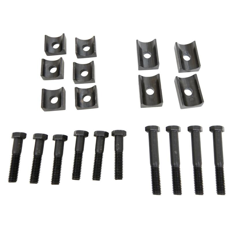 This kit includes 4 long clamps, 6 short clamps along with the bolts needed to properly install our 1621-16 Ultra Pro Magnum Shaft-Mount rocker system for Chrysler B/RB 383-440.