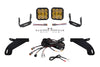 Features Bolt-on fitment compatible with Ford F-150 2021-2023 Ultra-high intensity, with custom-engineered TIR optics Selectable backlight color, with eight color options Torture-tested, heavy-duty construction Control through factory aux switch bank using the included harness Assembled in USA Overview Perfect Fitment. The Bumper LED Pod Light Kit compatible with Ford F-150 2021-2023 from Diode Dynamics allows you to mount two SS5 LED pods on the factory bumper. These application-specific brackets were CAD-designed to bolt into place using factory mounting points. Designed for Performance. Featuring the highest output intensity of any 5-inch LED pod on the market, these lamps have been designed for maximum functionality, with patented technology and custom-engineered TIR optics, all in a durable package. Selectable Backlight. The Stage Series 5inch LED Pods included in the White kit feature a selectable backlight with eight different color options, perfect for an extra styling accent, or for more visibility when you’re not using the main beam. Selecting your backlight color is easy - simply alternate the power on and off. There’s no complicated programming with a controller! The SS5's backlight fully illuminates the TIR optic, providing unique accent lighting that you won't find on other LED pods. NOTE: Due to the yellow lens, the Yellow kit is only available with an Amber backlight color. NOTE: The existing mounting points must be drilled out larger in order to secure the bracket.