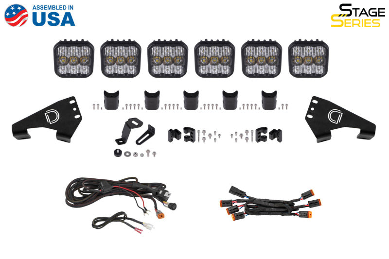 Features Bolt-on fitment compatible with Polaris RZR Pro 2020+ Allows you to mount six pod linked lightbar to the roof Ultra-high intensity, with custom-engineered TIR optics Selectable backlight color, with eight color options Torture-tested, heavy-duty construction Assembled in USA Overview Perfect Fitment. The CrossLink Lightbar Kit compatible with Polaris RZR Pro 2020-2023 from Diode Dynamics allows you to mount six linked SS5 LED pods on top of the aluminum roof panel. These application-specific brackets were CAD-designed to bolt into place using factory mounting points above the factory windshield. No cutting or drilling required Designed for Performance. Featuring the highest output intensity of any 5-inch LED pod on the market, these lamps have been designed for maximum functionality, with patented technology and custom-engineered TIR optics, all in a durable package. Selectable Backlight. The SS5 LED Pods included in the White kit feature a selectable backlight with eight different color options, perfect for extra styling, or for more visibility when you’re not using the main beam. Selecting your backlight color is easy - simply alternate the power on and off. NOTE: Due to the yellow lens, the Yellow kit is only available with an Amber backlight.