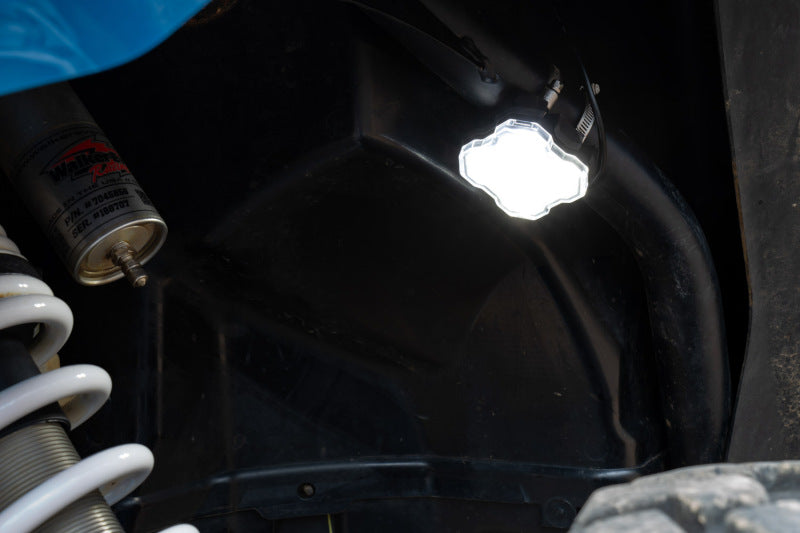 Features Allows you to mount four rock lights to your SXS High-intensity light output Aluminum heatsink with signature Ico Bezel shape Thick, durable lenses, engineered to spread light Engineered and Assembled in USA Overview Introducing the Stage Series Rock Light SXS Installer Kit from Diode Dynamics! This kit includes everything you need to install four rock lights in the wheel wells of your UTV. Stage Series Rock Lights set a new standard in the rock light category. These USA-assembled units offer unmatched light output in a compact size, making them the perfect solution to add more light underneath your Side-by-Side. Choose Your Color. The Stage Series Rock Light SXS Installer Kit is available in either cool white or RGBW multicolor. Both kits come standard with diffused lenses, providing excellent integration and light spread. White is a great option to get the maximum output possible. If you’re looking for more options, along with strobing, fading, and custom patterns, you’ll want to check out our RGBW Multicolor version! Easy Install. The included roll bar mounts allow you to easily mount our Stage Series Rock Lights in the wheel wells of your SXS. Using the included clamps, simply mount the rock lights to the main frame support bars in the wheel wells! Proven Reliability. We know that your rock lights will be put to the test, so you can rest assured that they have been designed for superior durability and extensively tested for long-term operation. Our Stage Series Rock Lights can handle whatever you throw at them.