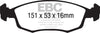 If you simply need a quality OEM replacement pad, look no further than Ultimax. Made in the UK Bristol EBC Brakes manufacturing plant Ultimax is a beautifully engineered brake compound that lasts well, produces minimal dust and is the perfect choice for the urban or daily driver. Why spend more if all you need is a quality replacement pad.The Ultimax pad does include a small percentage of steel fibre to achieve its price point, far less content than our competition where steel fibre content can attain 50 volume and this optimum fibre blend is what makes Ultimax both popular and unique amongst brake blends .Once bedded in Ultimax will inspire confidence in any car light truck or SUV no matter how you drive.Its universal heat range abilities and low rotor wear are additional benefits of the Ultimax pad range which is the EBC worldwide number one selling brake with numbers of sets sold running into tens of millions over the recent years. Unlike many of our performance grades Ultimax has remain unchanged as a pad compound for ten years now, a true testament to its success and customer acceptance. Why change a winning formula.Black coded in the EBC range EBC Ultimax is a fully ECE R 90 approved brake pad range and at its lower price point, less than HALF the price of original parts yet TOTALLY EQUIVALENT by nature of its R 90 brake safety approval, Ultimax offers great value for money and first class driving safety.When replacing brakes of any kind please remember how important brake safety is to your own well being and either have a professional mechanic install your new brakes or if you are a qualified mechanic use the EBC installation DVD as a guide in support of your vehicle owner's manual. These installation guide DVD tasters can be viewed here and the full DVD purchased from online vendors.
