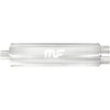 The MagnaFlow 7in. Round Straight-Through Performance Exhaust Muffler 12761 brings our world-famous exhaust sound and dyno-proven performance to your ride in a weight-optimized 7x7x27in. package with a premium satin finish. The straight-through free-flowing design of this round-bodied muffler's reversible, universal 2.5/2.25in. diameter inlet/outlet layout enables versatile installation options to match the spacing requirements of your vehicle. Due to the cutting and welding involved, professional installation is highly recommended. Internally, 12761 utilizes a perforated stainless steel core wrapped in stainless steel mesh and acoustic fiber fill to achieve a powerful, resonant tone. This muffler is made of durable, corrosion resistant stainless steel and produced using cutting-edge CNC precision robotic manufacturing techniques, all backed by MagnaFlow's limited lifetime construction warranty.