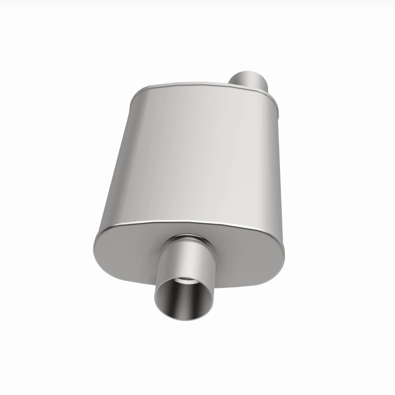 The MagnaFlow XL 4 X 9in. Oval Multi-Chamber Performance Exhaust Muffler 13216 features a straight-through, weight-optimized reversible design with a perforated stainless steel core featuring baffles and tuning gates, enabling it to deliver the powerful signature sound and dyno-proven performance that's made MagnaFlow a household name. Muffler 13216's oval-shaped, 4x9x14in. body and universal 2.5/2.5in. diameter inlet/outlet layout enables flexible installation options to match the spacing requirements of your vehicle. Professional installation is highly recommended. 13216 is produced using advanced CNC precision robotic manufacturing techniques and features durable, corrosion resistant stainless-steel construction, all backed by MagnaFlow's limited lifetime warranty.