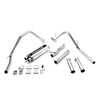 The MagnaFlow 2003 Dodge Ram 1500 Street Series Cat-Back Performance Exhaust System 15788 brings out the personality of your 5.7L 2003-2003 Dodge Ram 1500 with our signature resonant, powerful engine tone and dyno-proven performance. Thanks to its fast-flowing, mandrel bent 3in. main piping and 1 Straight-Through mufflers ending in a Dual Split Rear exit with 3.5in. Polished Clamp-On Single Wall Angle Cut Rolled Edge tips, this Dodge Ram 1500 exhaust kit has the performance chops to match its sporty sound and appearance. Upgrade your ride to the next level with an exhaust that has the pipes to put other Dodge Ram 1500's to shame. With this system your vehicle will be producing Aggressive exterior and Moderate interior sound levels while leaving other cars and trucks feeling envious at every stoplight. Exhaust kit 15788 features a cat-back layout that replaces your ride's stock exhaust components from near the catalytic converter on back. Extensive 3D scanning during development has resulted in a direct-fit design that you can easily install yourself. 15788 is produced using CNC precision robotic manufacturing techniques and is backed by MagnaFlow's 1-year limited finish warranty and limited lifetime construction warranty.