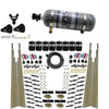 This four stage NX Dry Direct Port System provides nitrous directly into each cylinder through four sets of high flow NX Dry Nozzles. This system is designed to be used with an engine management system that can add nitrous enrichment through the engines fuel system. A jet card with lbs./hr. flow data for each horsepower setting is provided to aid in tuning your engine management systems nitrous enrichment settings. Includes eight billet aluminum and carbon fiber Lightning Nitrous Solenoids, thirty two NX Dry Nozzles, 12lb composite nitrous bottle with a billet aluminum Lightning 45 bottle valve, stainless bottle brackets, 6an nitrous feedline, jets for 100-600hp per stage, WOT switch, relay, relay harness and all necessary hardware to complete the installation.