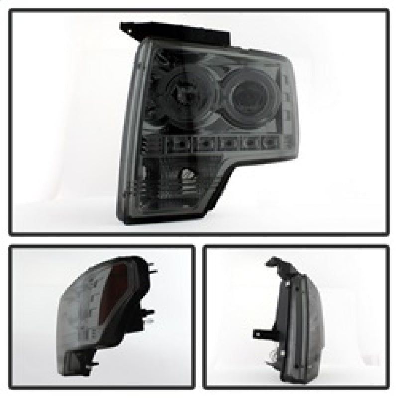 Spyder Ford F150 09-14 Projector Headlights Halogen Model- LED Halo LED Smke PRO-YD-FF15009-HL-SM