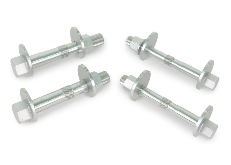 These camber bolts overcome the problems associated with the O.E lower inner camber bolts. The trouble starts when the front lower camber bolts rust into the tubes of the standard camber bolt set up and the tube of the rear bushing. A one piece front bolt and rear bolt designed to not corrode makes future wheel alignments trouble free.