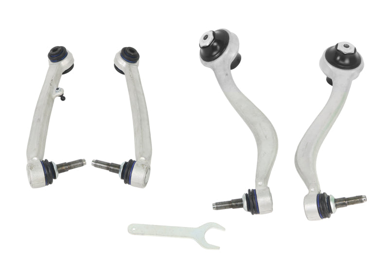 SuperProF20 & F30 series BMW Front Control Arm and Radius Arm set is offered as a Performance upgrade from the standard OEM style rubber bushings and ball joint. The new SuperPro arms allow for adjustment to achieve additional caster independently on each side of the vehicle. This feature is best utilized to correct a slight pull and to enhance directional stability and feel, or to simply maximize positive caster for improved grip and feedback. The OEM bushings are fairly soft and the SuperPro bushings reduce the arm movement and increase stability under braking, cornering and will increase tire life. The SuperPro Alloy Lower Control Arm is an M style arm with a fixed camber increase fitted with a heim style Bushing to complete the package. The SuperPro bushings allows full articulation and movement without binding and with no increase in noise, vibration or harshness. Complete Alloy Control Arm Kit “ includes Front Radius and Lower Control Arms. Both Arms are a complete arm replacement and include SuperPro Bushings and a ball joint The Control Arm delivers 1 degree of additional camber The Radius Arm is "on car" adjustable The Radius Arms allow for up 0.8 Degrees caster increase or decrease Kit includes a spanner to adjust the Radius arms Suits Caster arm subframe mount width 95mm ALOY0030K is designed to suit the BMW F20, F21 F22 F30, F31, F34 and F35 chassis. ALOY0030K does not fit the BMW F80, F82, F83 or F87 chassis.