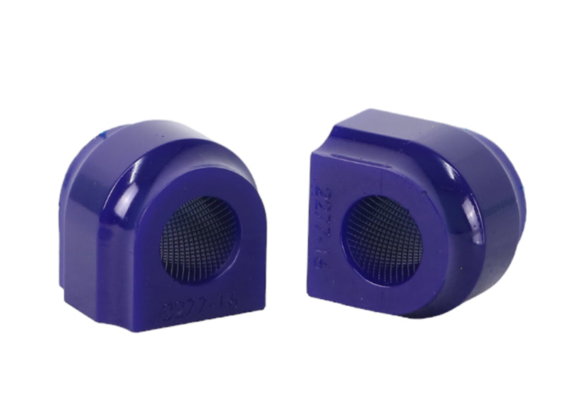 Sway bar mount bushings are one of the most underappreciated components in your suspension system. Responsible for anchoring the sway bars and facilitating proper function and body control of your vehicle the OEM rubber bushings are tasked with quite a job and in-turn wear quickly compromising the effectiveness of your sway bar and contributing to a loose, sloppy feeling on the road over time. SuperPro's sway bar mount bushings are designed to fit the OEM designed hardware and mountings - no generic one-size-fits all bushings and cheap universal hardware here - each bushing is designed to integrate into the factory suspension design and function. Additionally grease retention technology is used in each bushing we make for a lifetime of smooth and silent operation turning a frequent maintenance item into a one-time repair upgrade to keep your vehicle driving like new; for life.