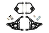 UMI’s 2nd Generation F-Body a-arm kit, P/N 265253-1 is designed to make your classic cruiser feel like modern muscle. Increased positive caster combined with improved camber curve and low friction Delrin bushings make for a well-tuned front end. Increased caster is achieved relocating both the upper and lower ball joints to enhance steering feel and improve high speed stability. As designed, the caster range is 5-7 degrees. The spindle pin location remains unchanged so fender clearance is like stock. The upper a-arms include offset CrMo cross shafts to reduce the amount of shims required when setting camber as well as a tall ball joint to improve camber gain. Upper and lower a-arms are assembled with UMI built Delrin bushings to allow proper suspension movement. A pancake style polyurethane bump stop is included to control suspension droop. The heavy duty lower spring bucket accepts factory and aftermarket coil springs as well as the popular hybrid coilover units. Laser cut UMI reinforcement plates add a great appearance and excellent strength. UMI’s double shear sway bar end links are included and work nicely with UMI P/N 4035 sway bar and also most aftermarket stock eyelet type sway bars. Available in UMI red or gloss black powder coat. 100% designed, manufactured and raced with pride in Philipsburg, PA - USA.